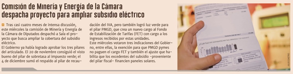 Subsidio eléctrico: Comisión despacha proyecto que amplía cobertura tras aprobar plan de techos solares - (Pulso)