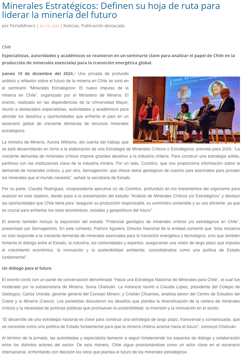 Minerales Estratégicos: Gobierno define hoja de ruta para liderar la minería del futuro - (mch.cl)