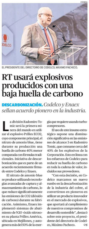 Codelco y Enaex sellan acuerdo pionero en la industria para el uso de explosivos producidos con una baja huella de carbono - (mvcomunicaciones.cl)
