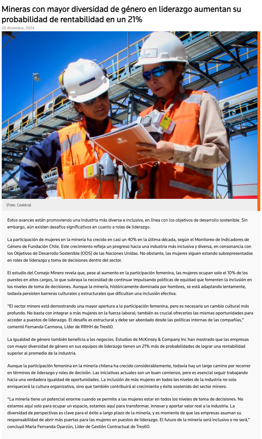 Empresas mineras con mayor diversidad de género en liderazgo aumentan su probabilidad de rentabilidad - (elzorronortino.cl)