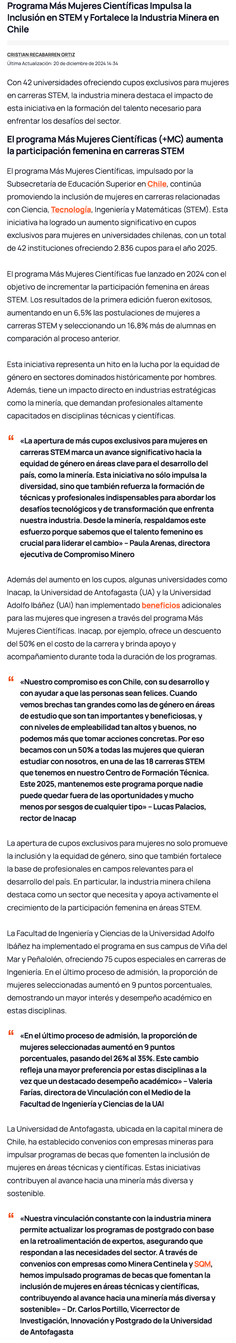 Más de 2.800 nuevos cupos para mujeres en carreras STEM convocan a técnicas y profesionales para desarrollar su futuro laboral en minería - (portalinnova.cl)