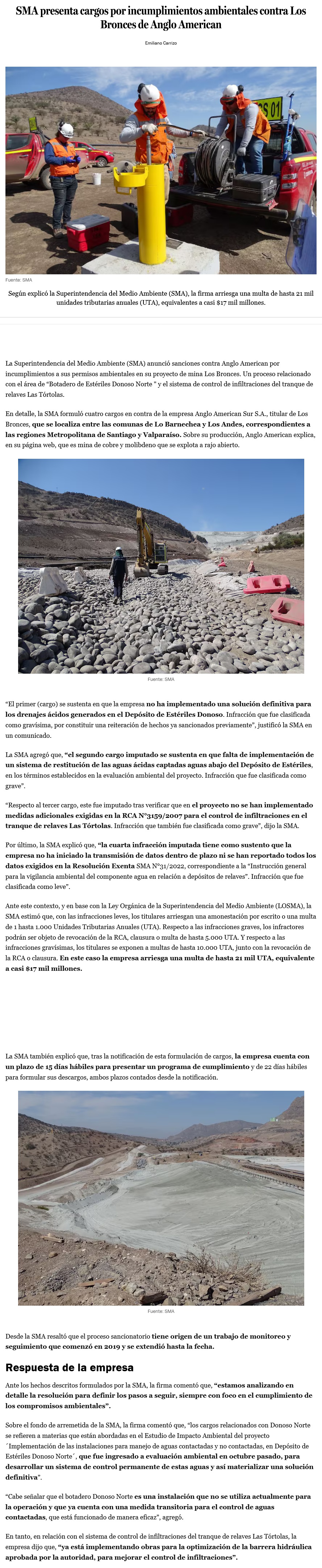 Ahora en Los Bronces: SMA presenta nuevos cargos contra Anglo American por cuatro infracciones - (biobiochile online)