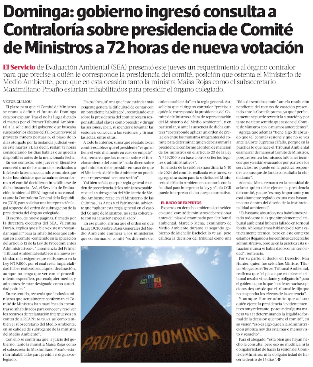 Dominga tensiona a la institucionalidad: ¿cuándo y quiénes votarían en el Comité de Ministros? - (Diario Financiero)