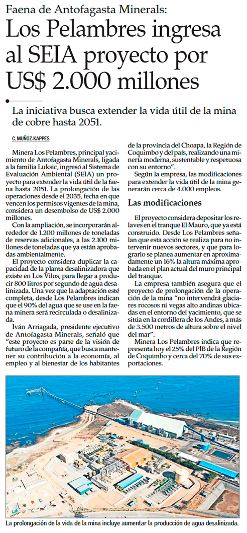 Minera Los Pelambres presentó proyecto para mantener sus operaciones hasta el 2051 - (La Región)