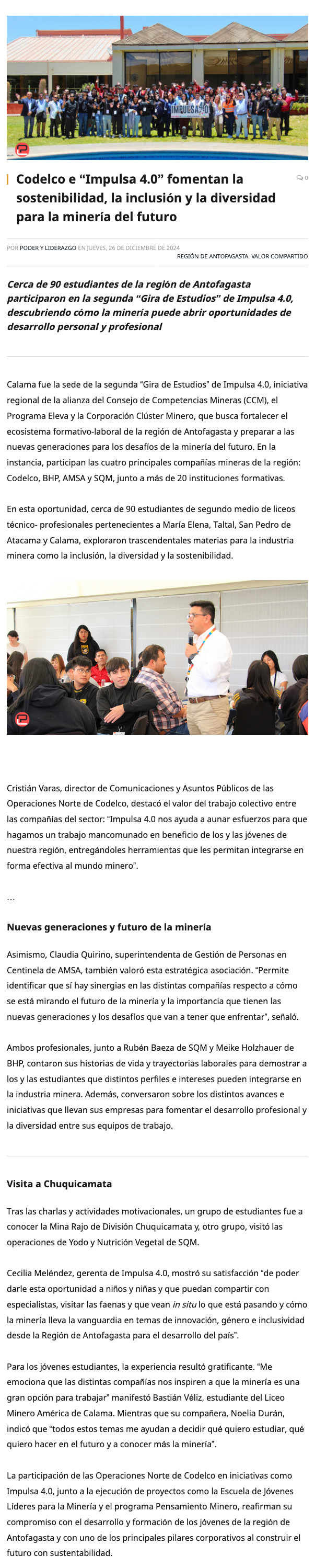Codelco e “Impulsa 4.0” fomentan la sostenibilidad, la inclusión y la diversidad para la minería del futuro - (nuevaminería online)