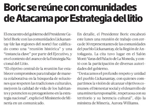 “Instancia clave”: Presidente Boric se reúne con comunidades Lickanantay por Estrategia Nacional de Litio - (La Tercera Online)