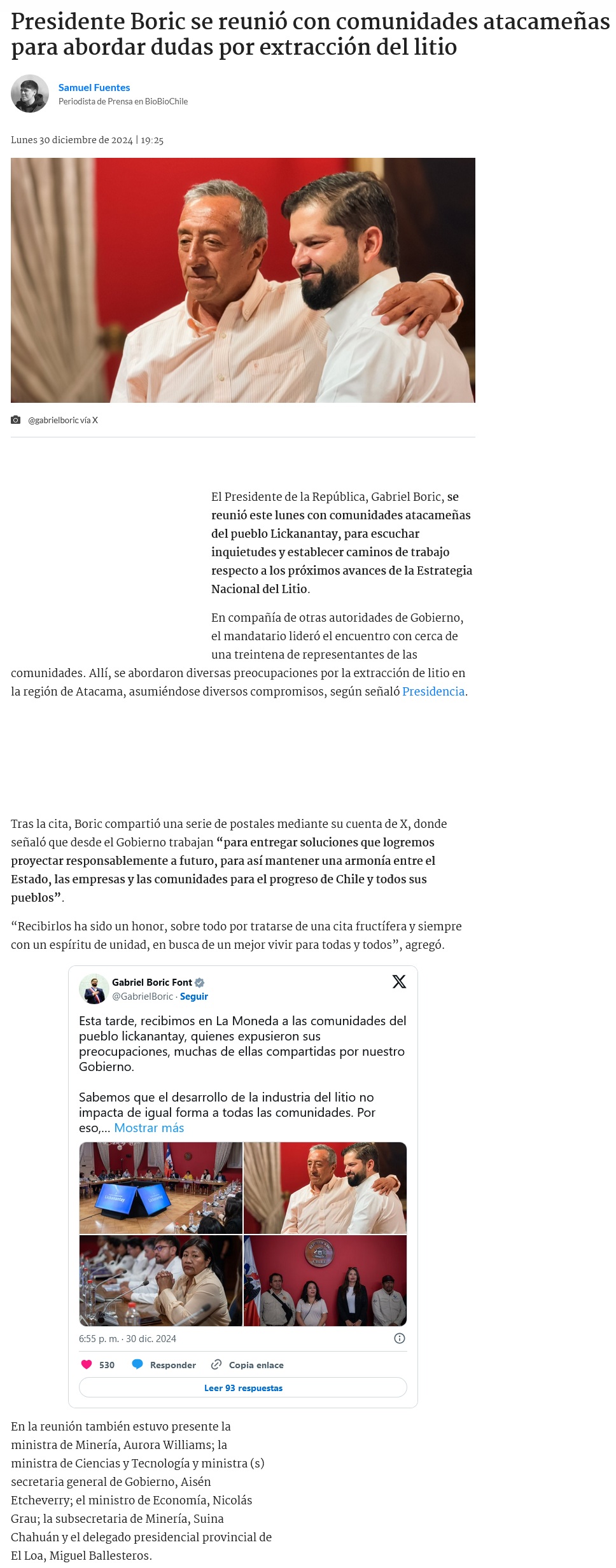 “Instancia clave”: Presidente Boric se reúne con comunidades Lickanantay por Estrategia Nacional de Litio - (La Tercera Online)