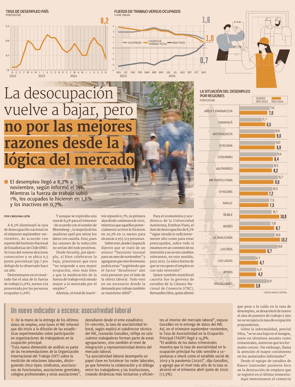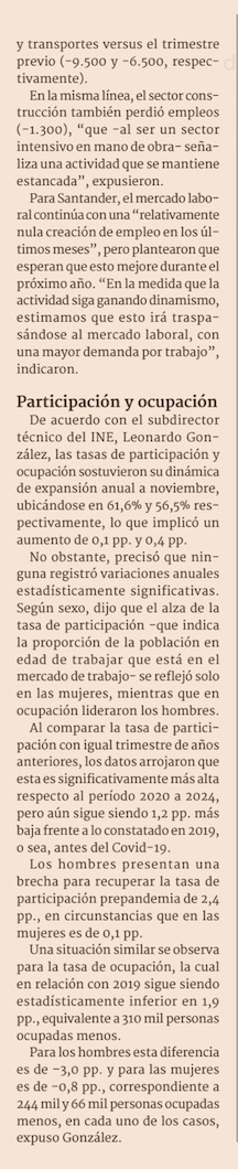 Menor búsqueda de trabajos incide en baja del desempleo, y persiste brecha en mujeres - (El Mercurio de Santiago)