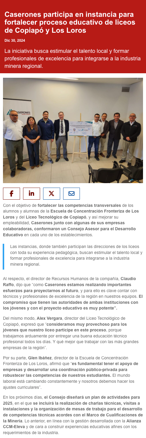Caserones participa en instancia para fortalecer proceso educativo de liceos de Copiapó y Los Loros - (Nostálgica Online)