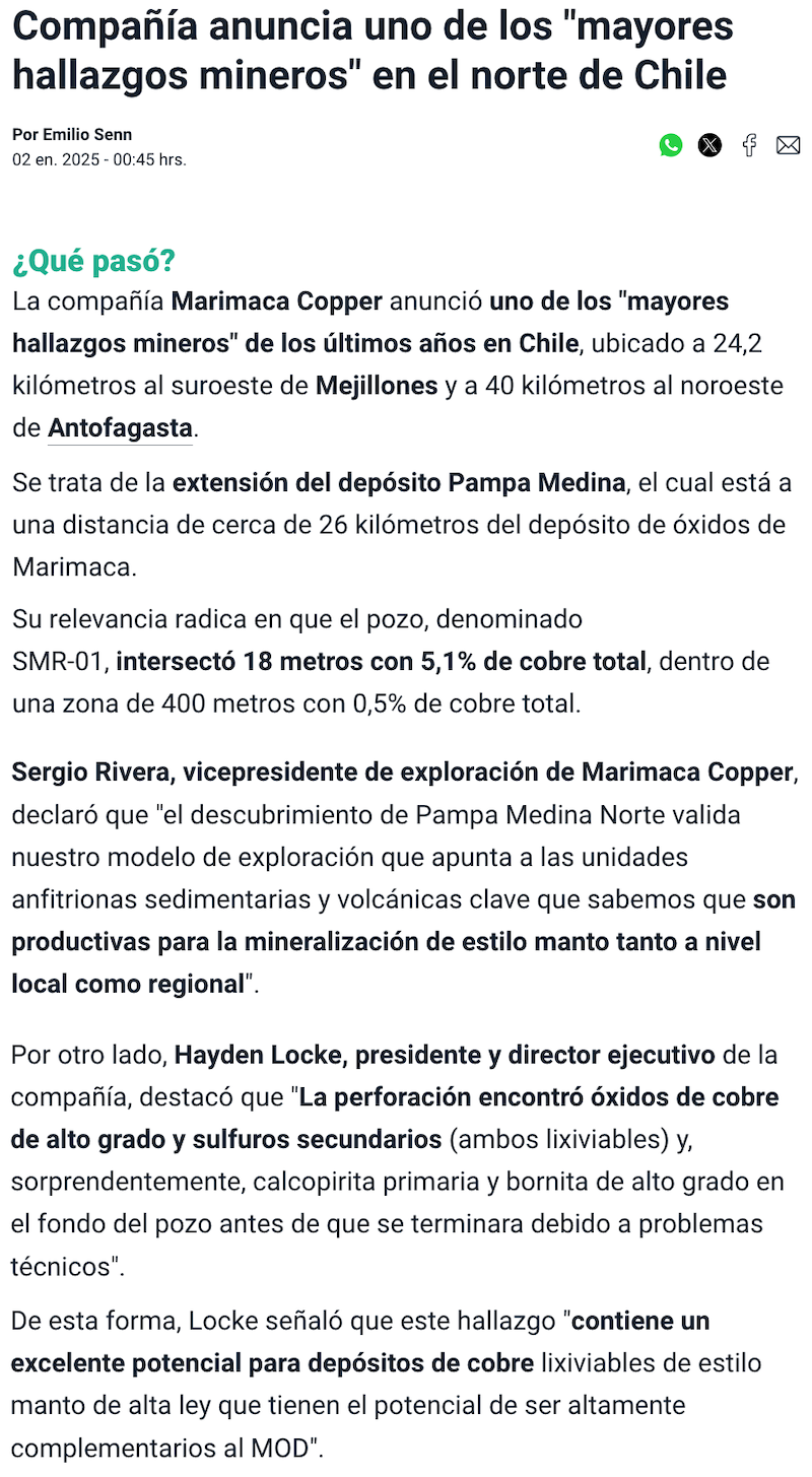 Marimaca Copper presenta innovador proyecto cuprífero en la región de Antofagasta - (madero.cl)