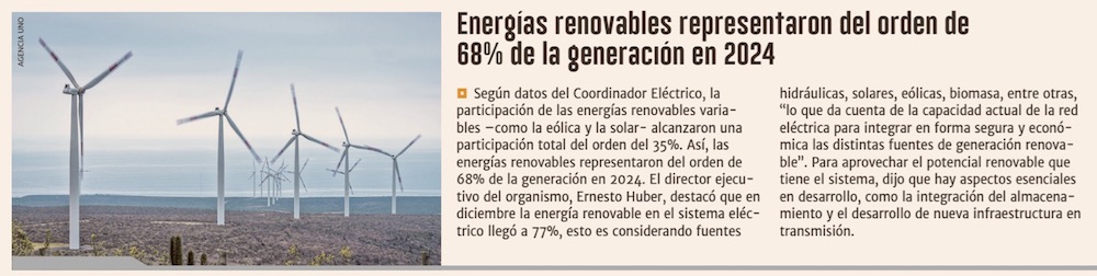 Las energías renovables no convencionales llegan al récord del 40% de la matriz en Chile - (El Mercurio de Santiago)