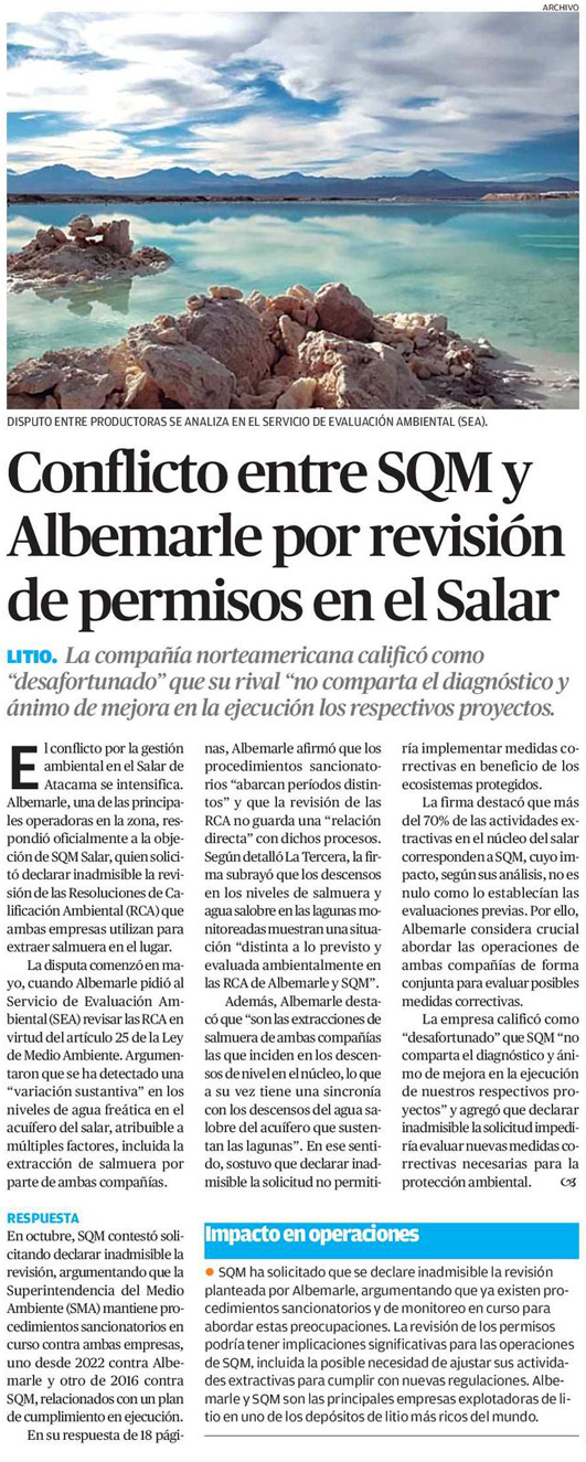 Disputa en el salar de Atacama: Albemarle responde a arremetida de SQM en proceso de revisión de permisos ambientales - (Pulso)