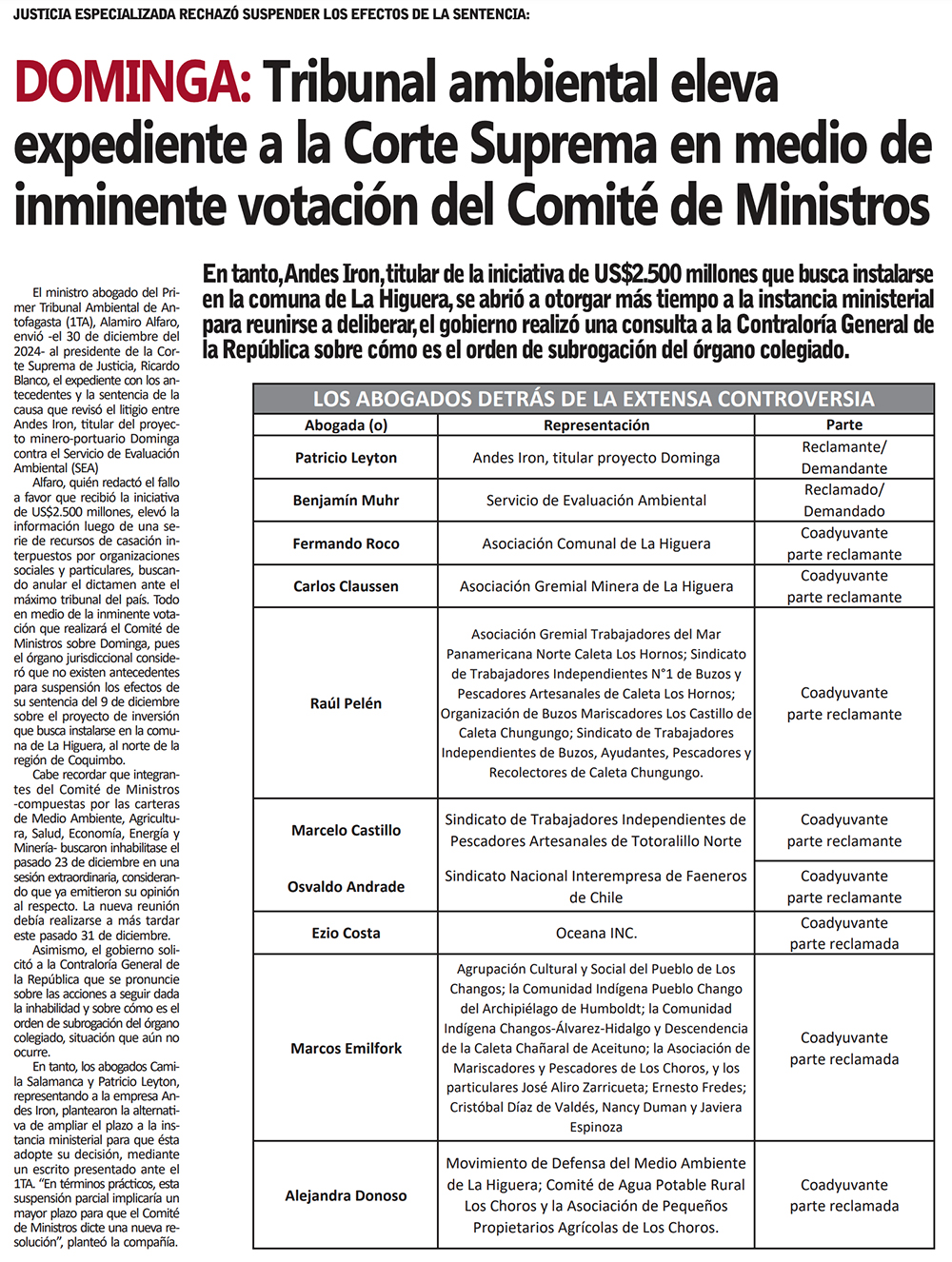 Contraloría emite dictamen y fija subrogaciones en Medio Ambiente por caso Dominga - (Pulso)