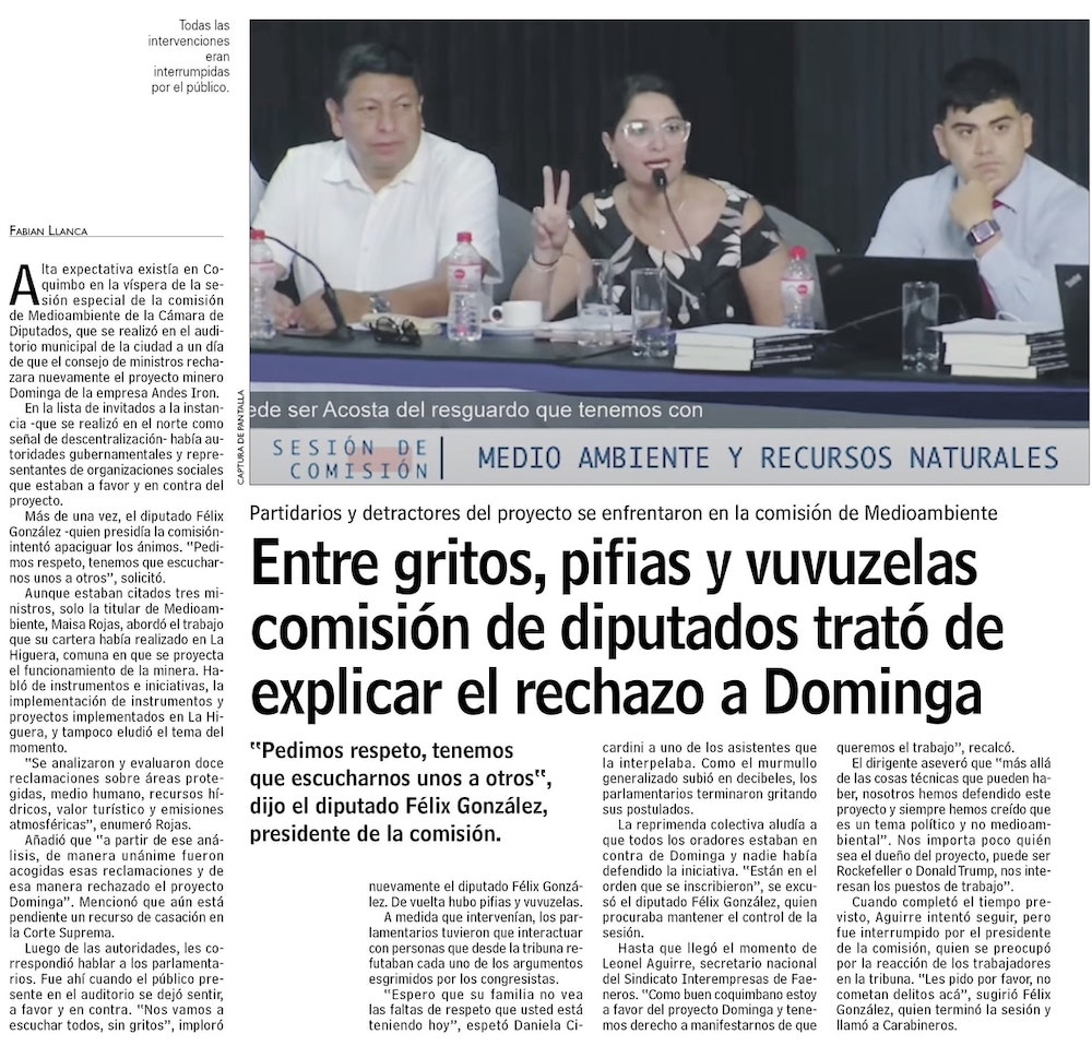 Diputados sesionan en Coquimbo en un clima de tensión por apoyos y rechazos al proyecto - (El Mercurio de Santiago)