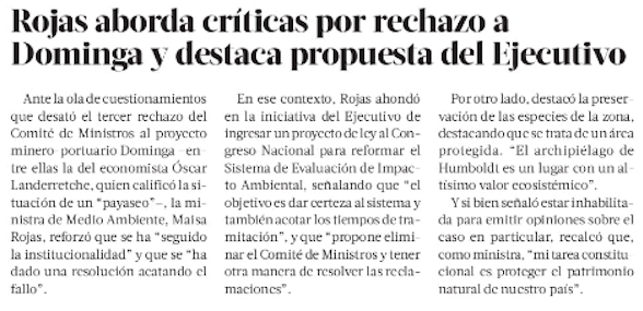 ¿Se respetó la institucionalidad ambiental en la votación de Dominga del Comité de Ministros? - (El Mercurio de Santiago)