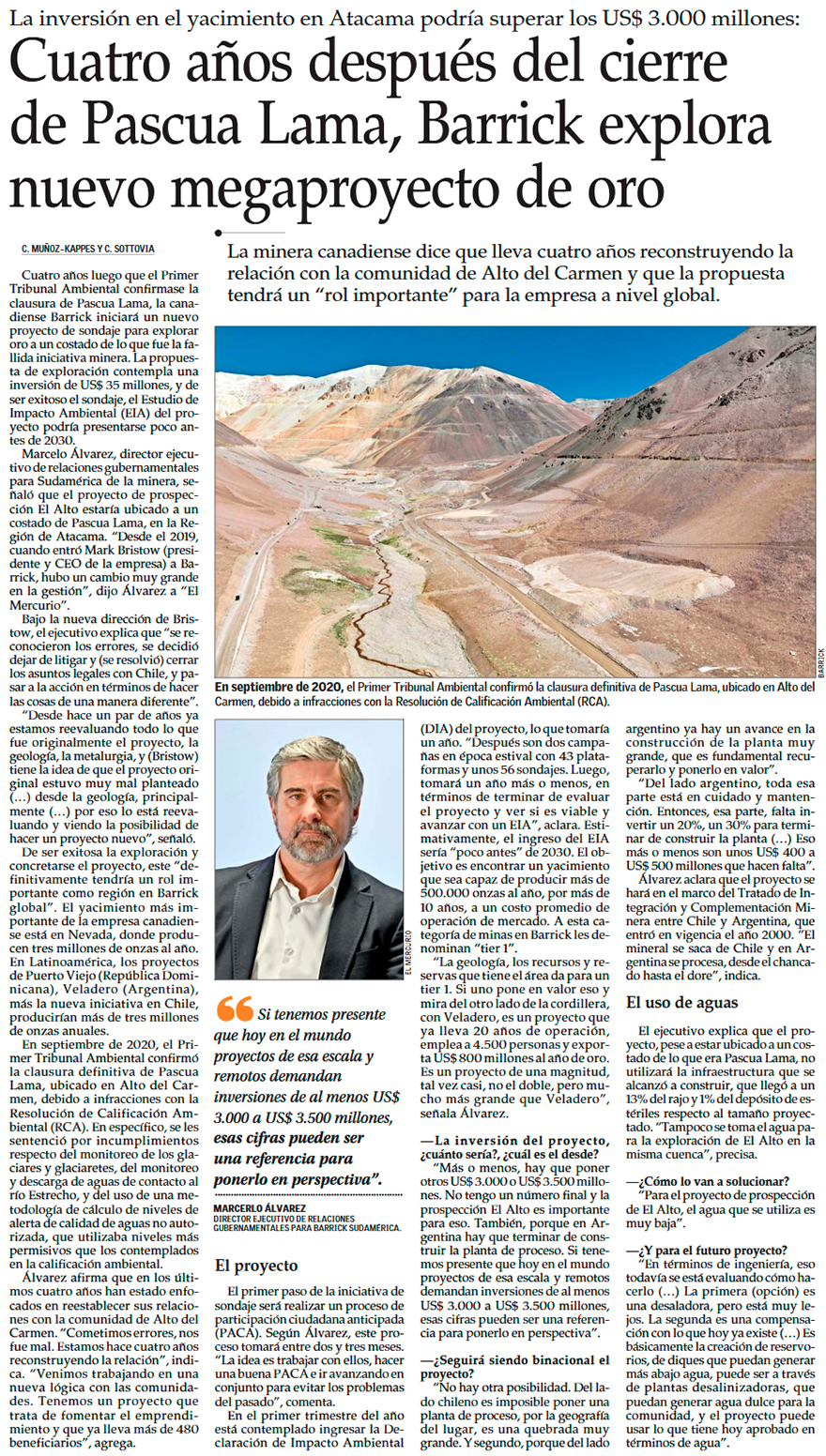 Barrick iniciará nuevos sondajes en la cordillera de Alto del Carmen - (El Diario de Atacama)