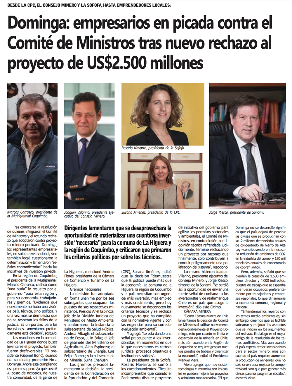¿Se respetó la institucionalidad ambiental en la votación de Dominga del Comité de Ministros? - (El Mercurio de Santiago)