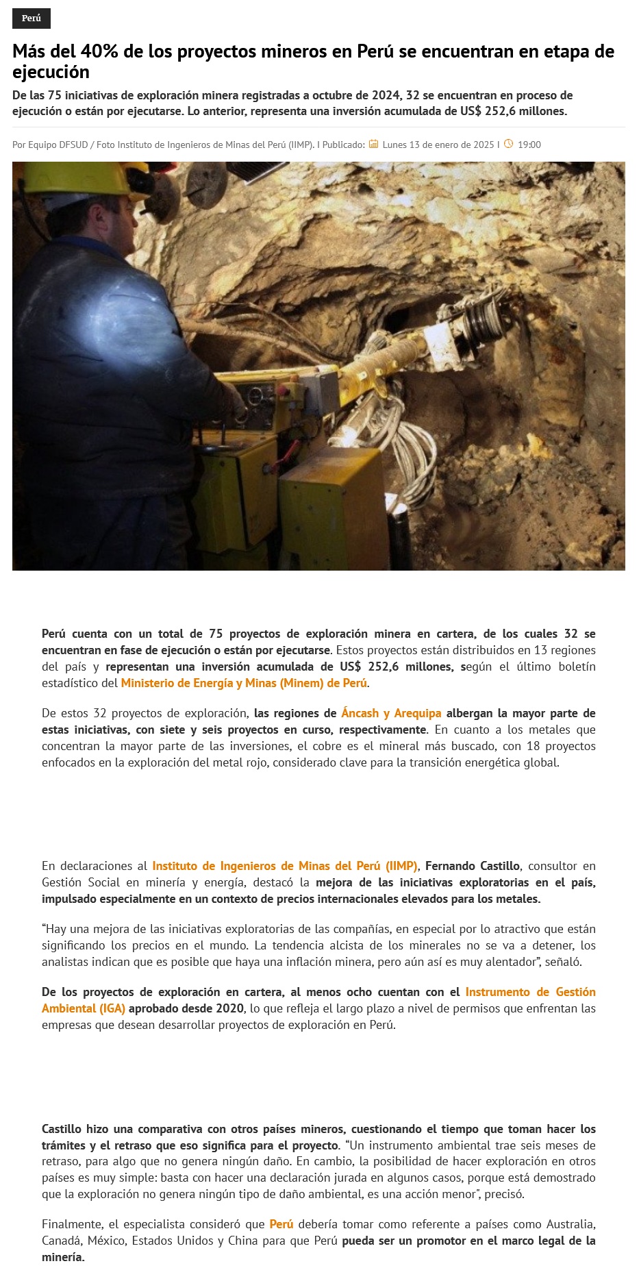 Perú: Hay 32 proyectos de exploración por US$ 252.6 millones en ejecución - (reporteminero)