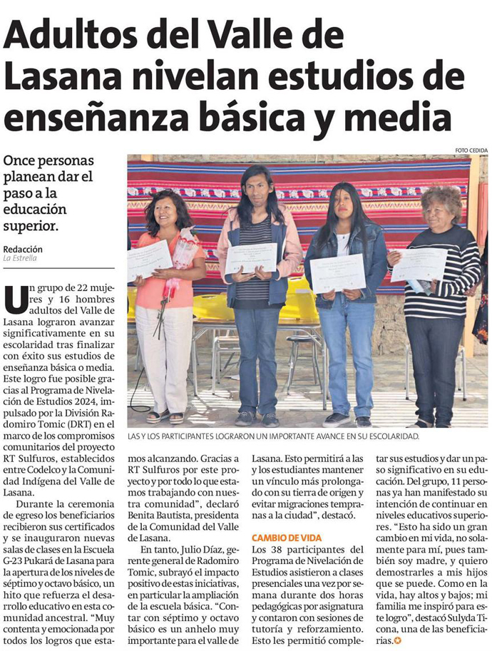 Con el apoyo de Radomiro Tomic, adultos del Valle de Lasana nivelan estudios de enseñanza básica y media - (elamerica)