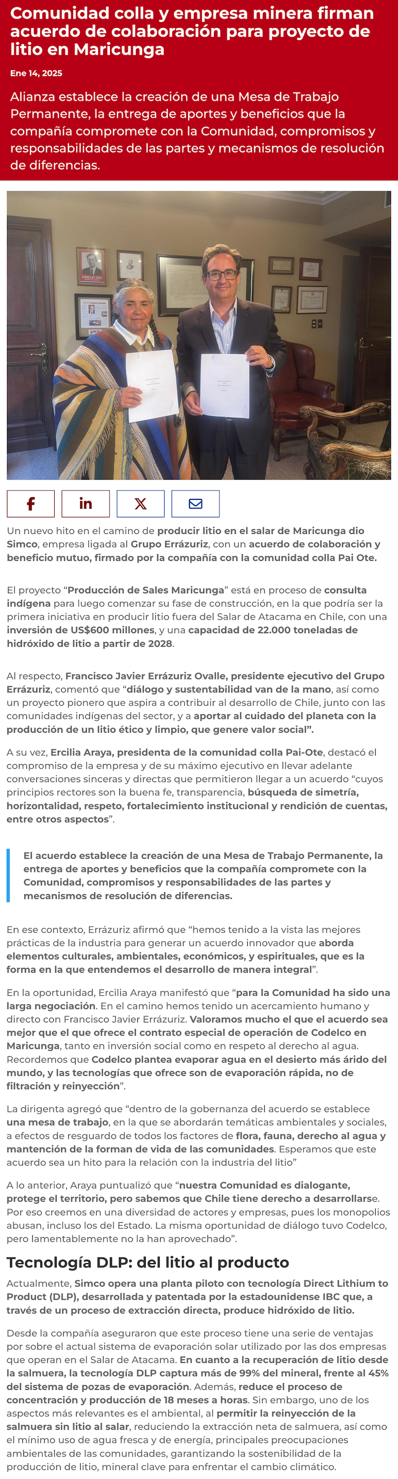 Maricunga: Grupo Errázuriz aventaja a Codelco en trato con comunidades - (Pulso)