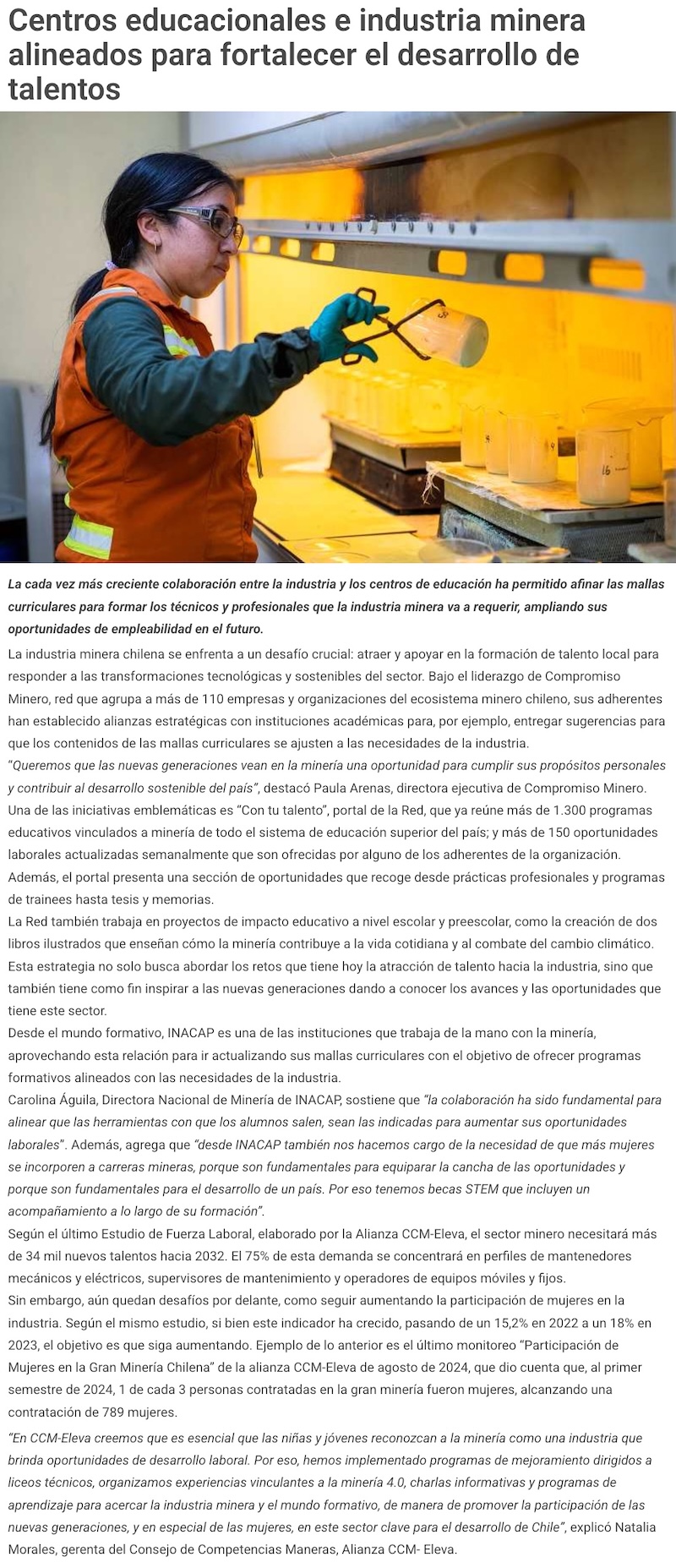 Instituciones educacionales y el sector minero se organizan con miras al desarrollo de talentos locales - (mch.cl)