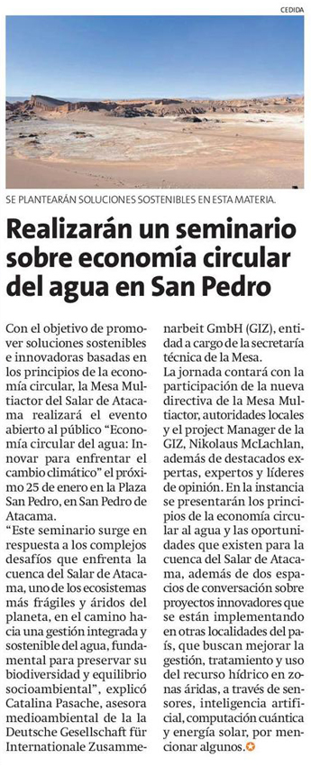 Economía circular del agua, cambio climático y soluciones innovadoras en seminario en San Pedro de Atacama - (soyantofagasta)