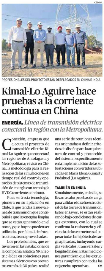 Conexión Kimal-Lo Aguirre viaja a China e India para realizar pruebas técnicas de la tecnología de corriente continua (HVDC) - (portalminero)