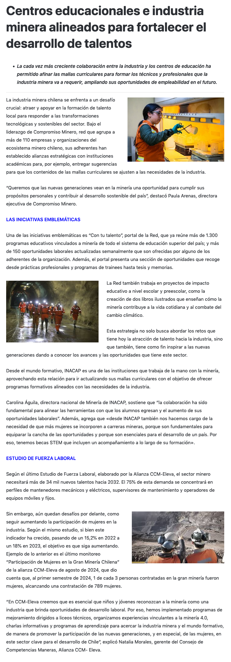 Centros educacionales e industria minera alineados para fortalecer el desarrollo de talentos - (portalminero)