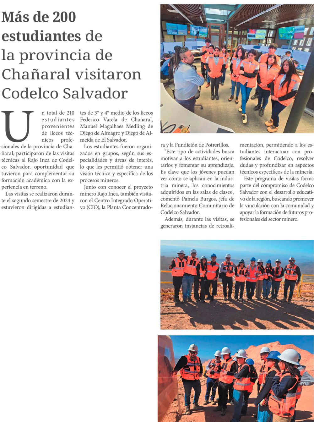 Más de 200 estudiantes de Chañaral visitaron Codelco Salvador - (El Diario de Atacama)