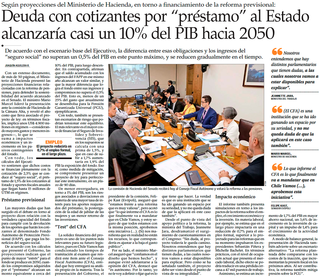 Reforma de pensiones: compromisos adquiridos por el préstamo reembolsable alcanzan un máximo de 10% del PIB en 2050 - (Pulso)