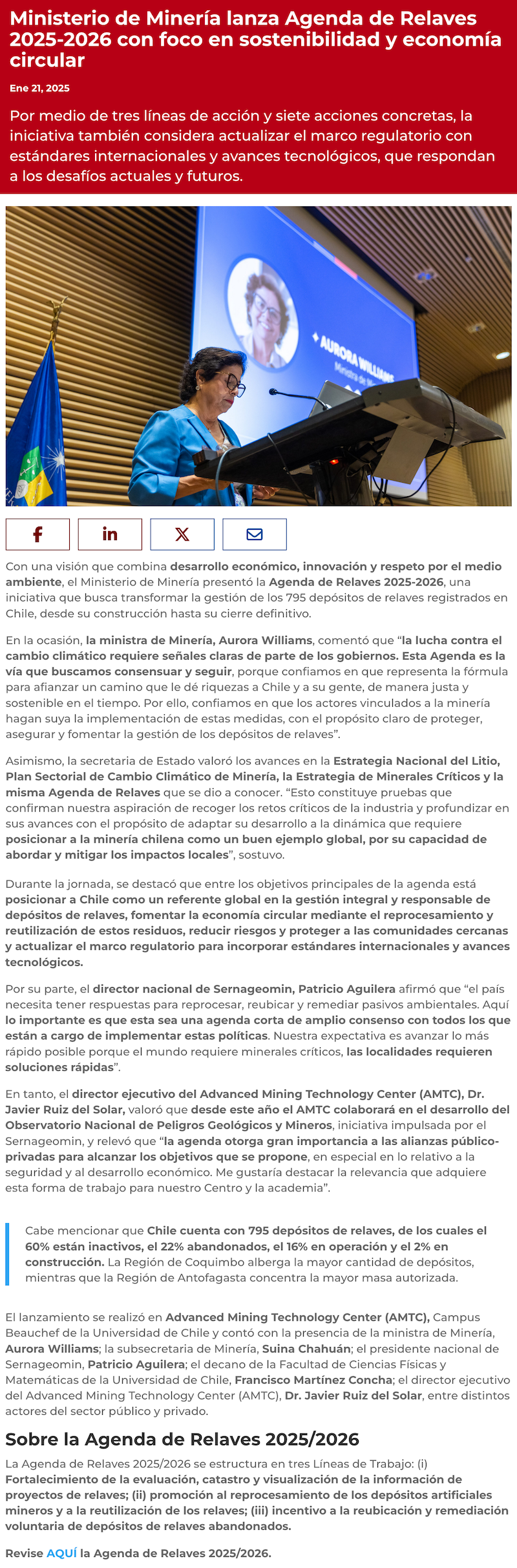 Ministerio de Minería lanza Agenda de Relaves 2025-2026 con foco en sostenibilidad y economía circular - (elamerica)