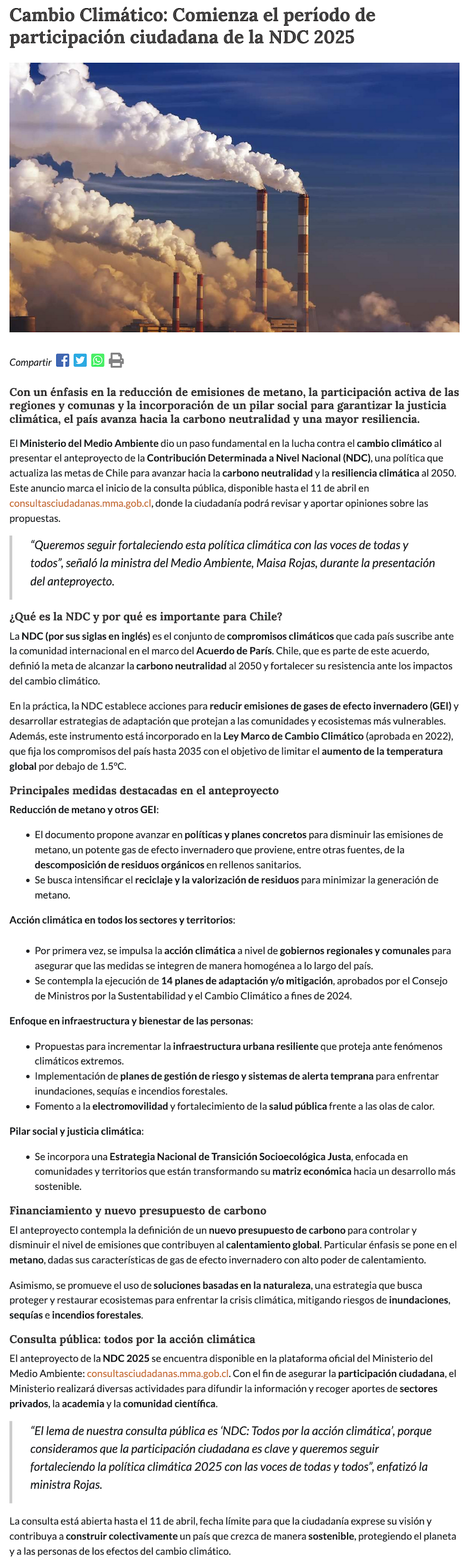 Chile actualiza su estrategia climática: inicia consulta ciudadana para la NDC 2025 - (electromineria.cl)