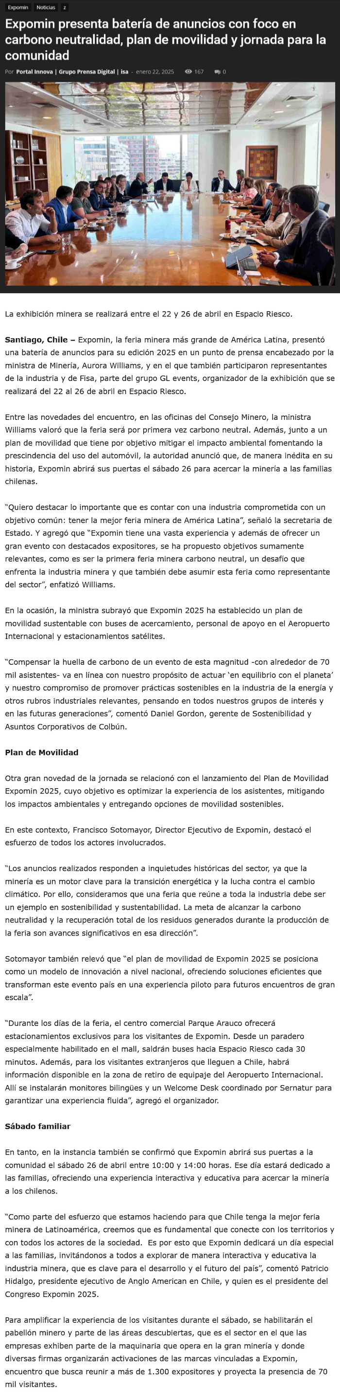 Expomin presenta batería de anuncios con foco en carbono neutralidad, plan de movilidad y jornada para la comunidad - (prensaeventos.cl)