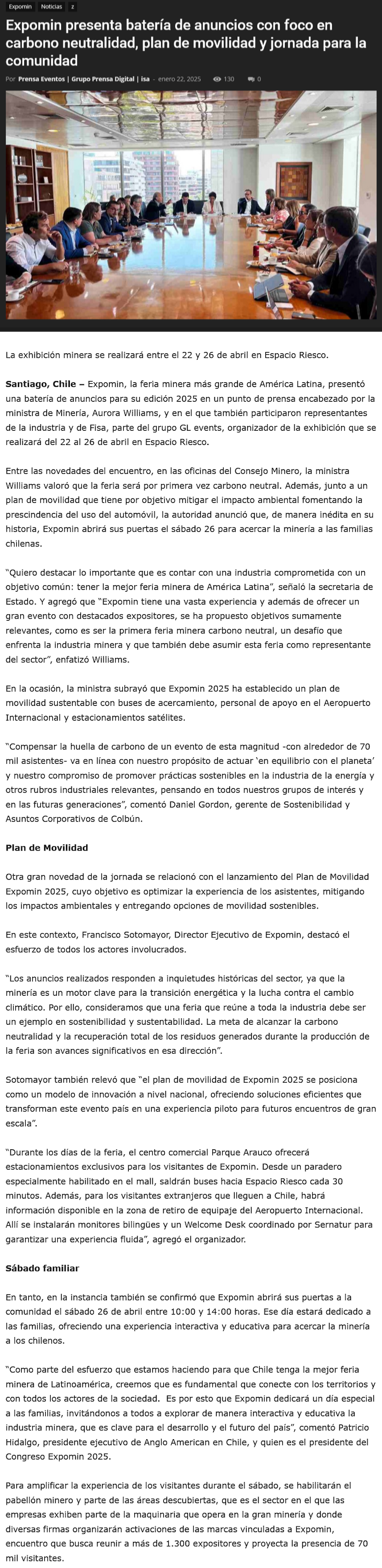 Expomin presenta batería de anuncios con foco en carbono neutralidad, plan de movilidad y jornada para la comunidad - (portalinnova.cl)