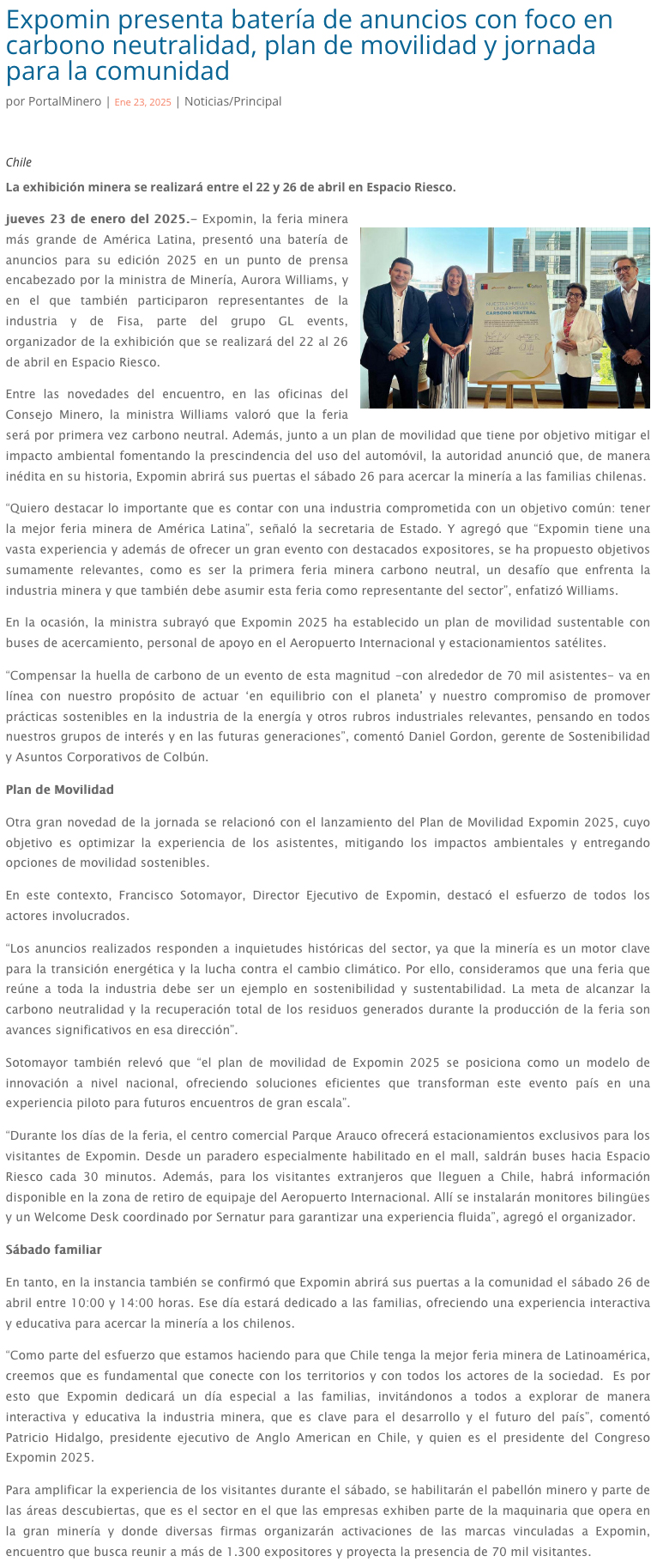 Expomin presenta batería de anuncios con foco en carbono neutralidad, plan de movilidad y jornada para la comunidad - (redimin)