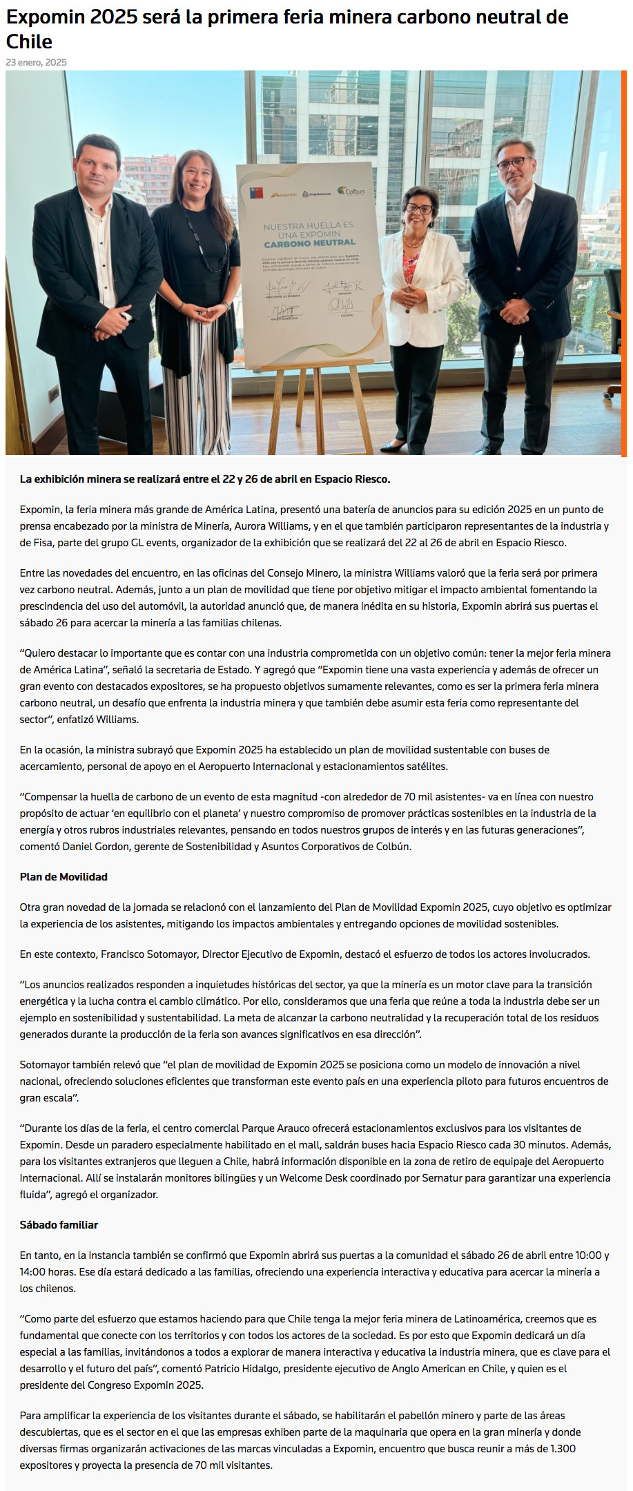 Expomin presenta batería de anuncios con foco en carbono neutralidad, plan de movilidad y jornada para la comunidad - (redimin)
