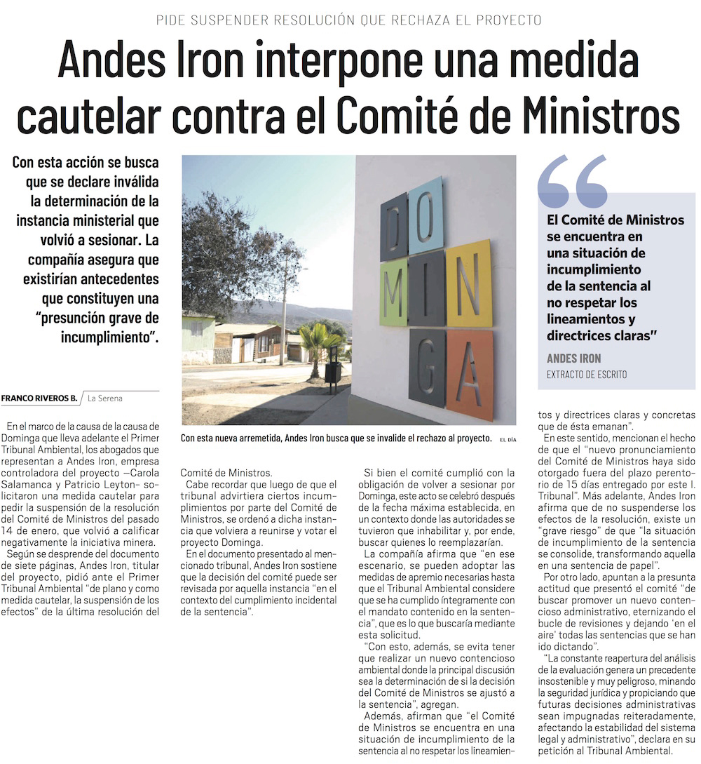 Dominga: sigue guerrilla judicial y Andes Iron pide suspender efectos de decisión de Comité de Ministros - (Pulso)