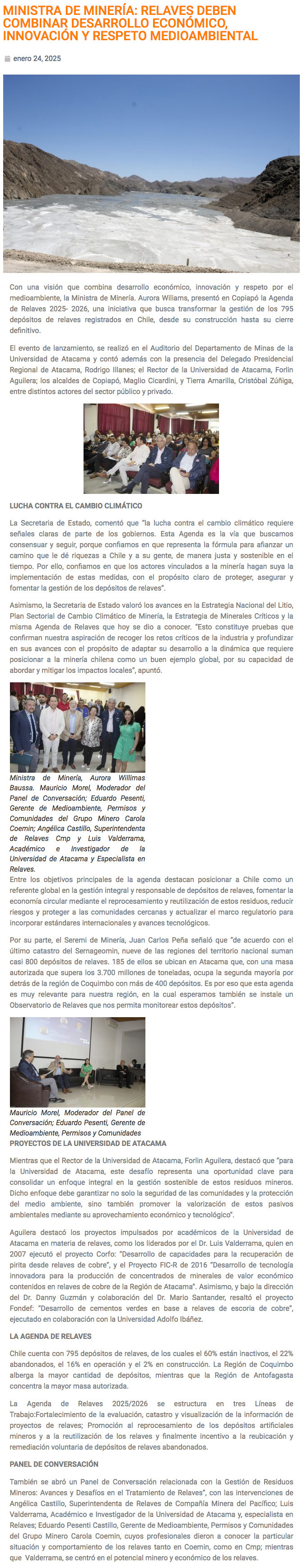 "Queremos que todos entendamos lo mismo en torno al concepto de relave crítico" - (El Diario de Atacama)