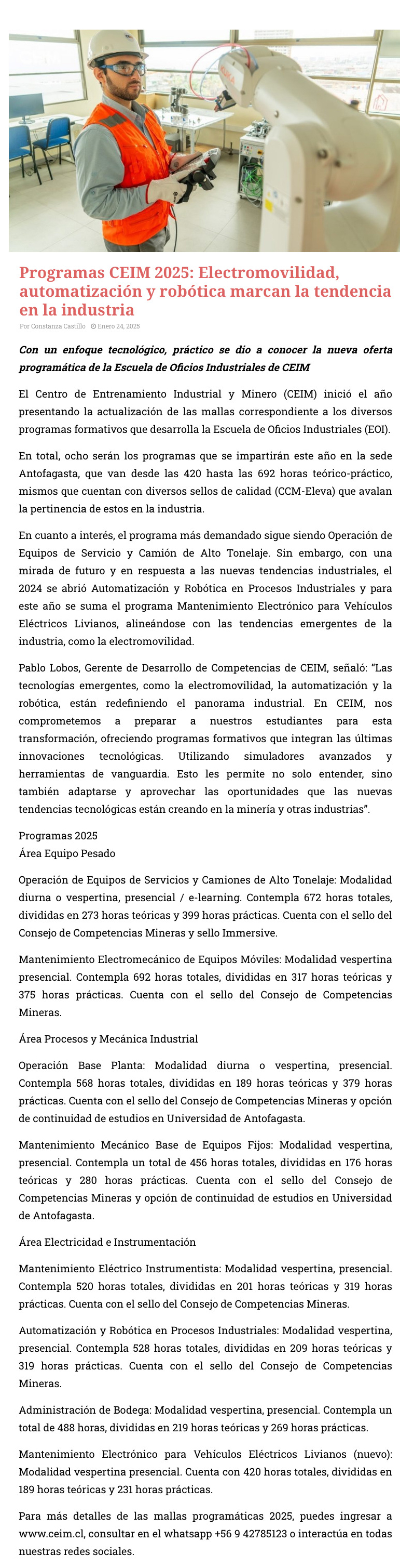 Programas CEIM 2025: Electromovilidad, automatización y robótica marcan la tendencia en la industria - (calamaenlinea.cl)
