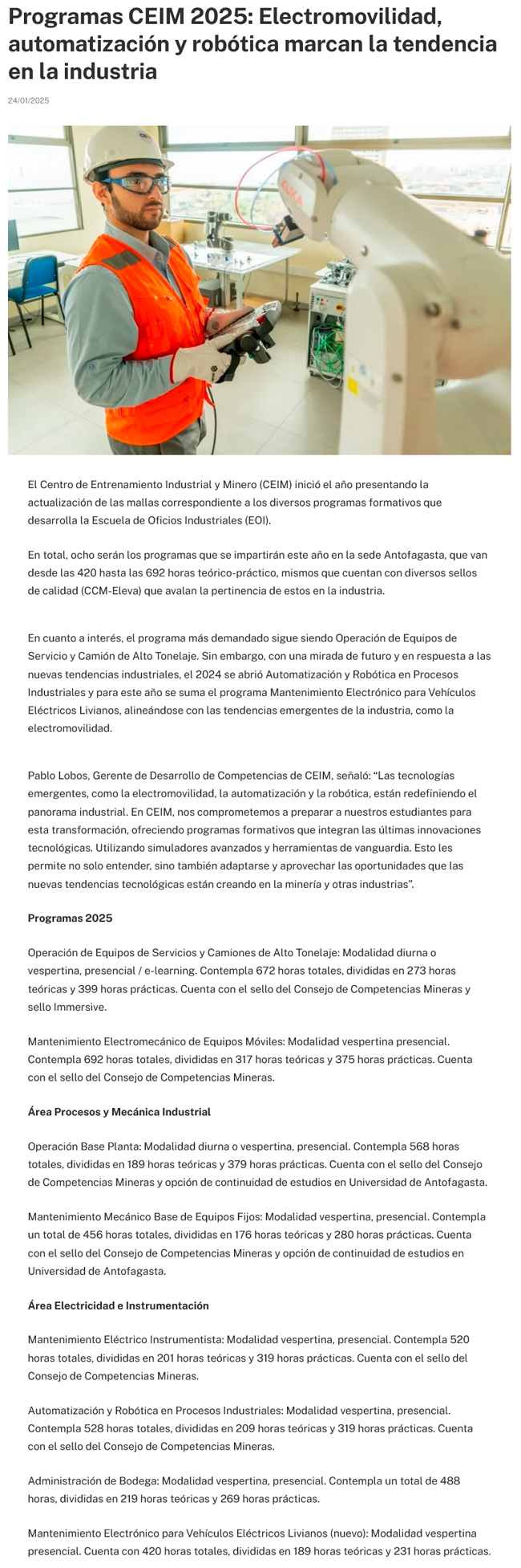 Programas CEIM 2025: Electromovilidad, automatización y robótica marcan la tendencia en la industria - (termometro.cl)