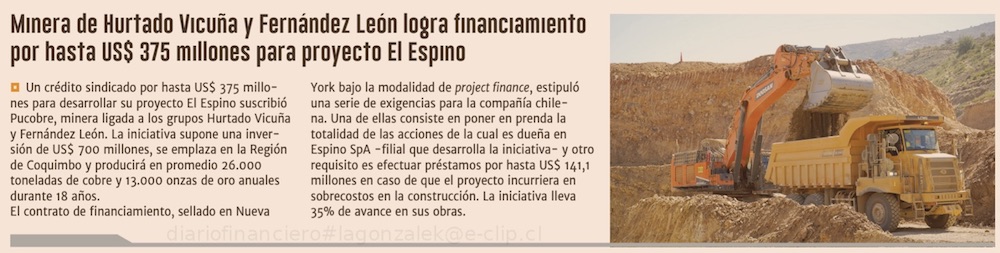 Minera ligada a las familias Hurtado Vicuña y Fernández León concluye financiamiento para el proyecto minero El Espino - (Pulso)