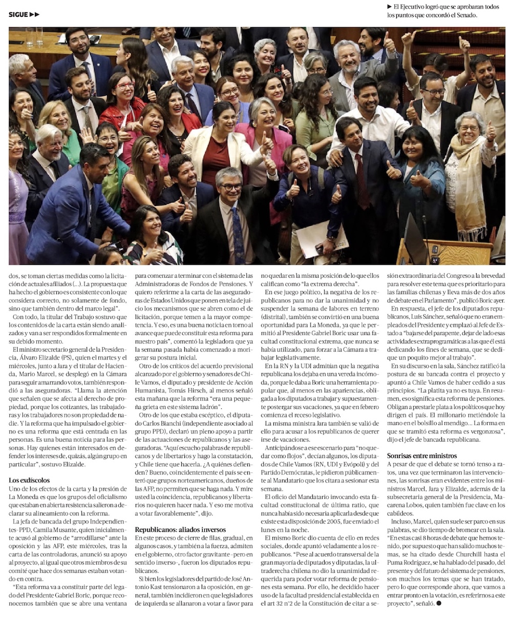 Congreso aprueba la reforma más profunda al sistema de pensiones desde el inicio de la capitalización individual - (El Mercurio de Santiago)