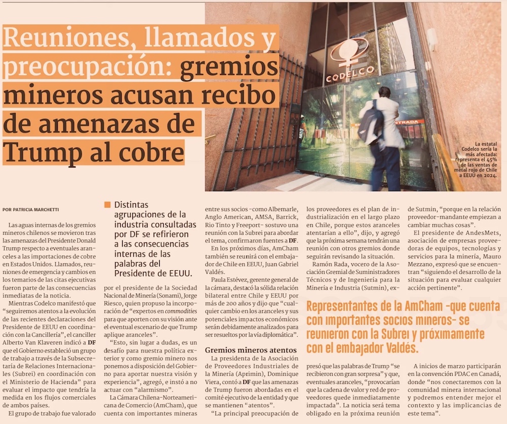 Aranceles: gremios mineros ven con cautela y preocupación amenaza de Trump que afectaría al 11% de los envíos de cobre - (Pulso)