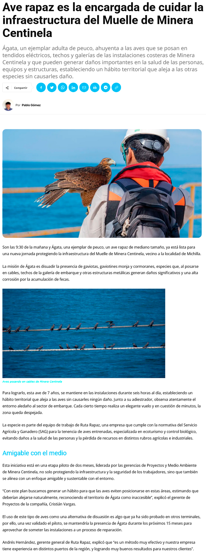 Ágata, el ave que protege el Muelle de Minera Centinela - (Hoy x hoy)