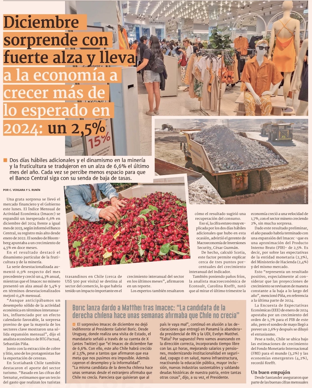 Economía crece 2,5% en 2024 - (La Segunda)