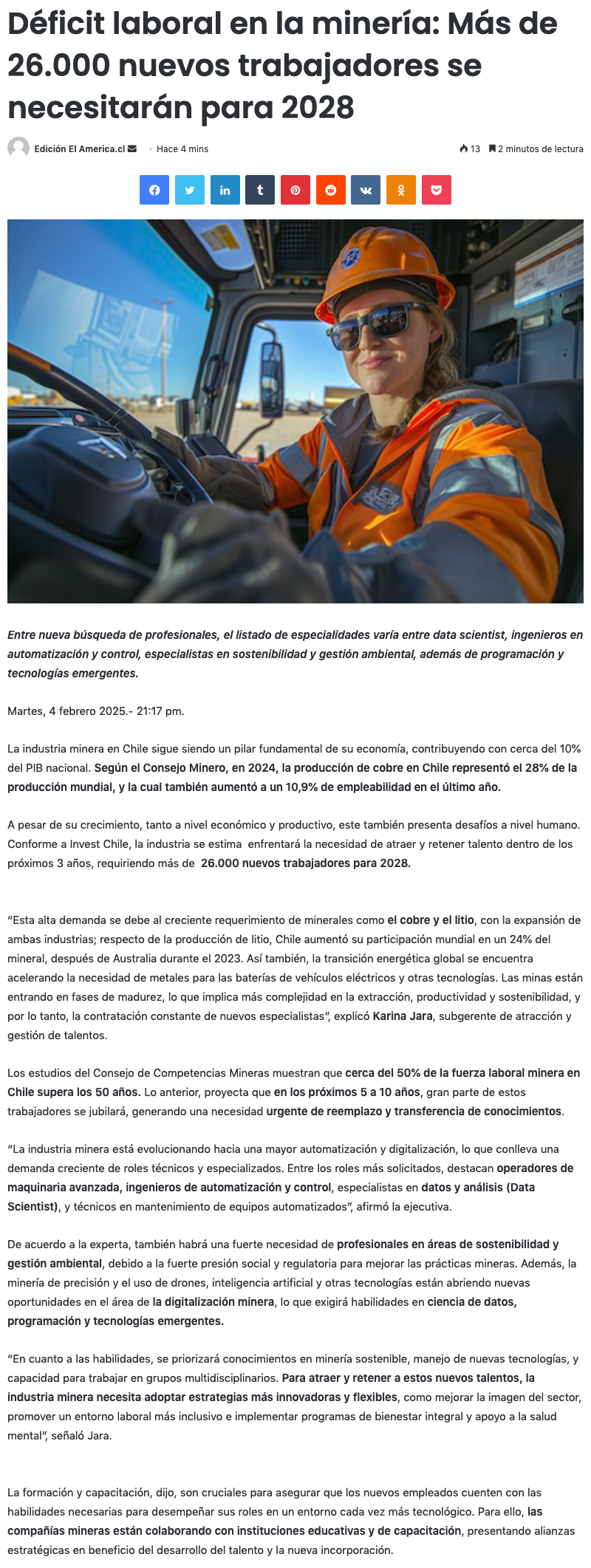 Industria minera chilena requerirá cerca de 26 mil nuevos trabajadores para 2028 - (Nostálgica Online)