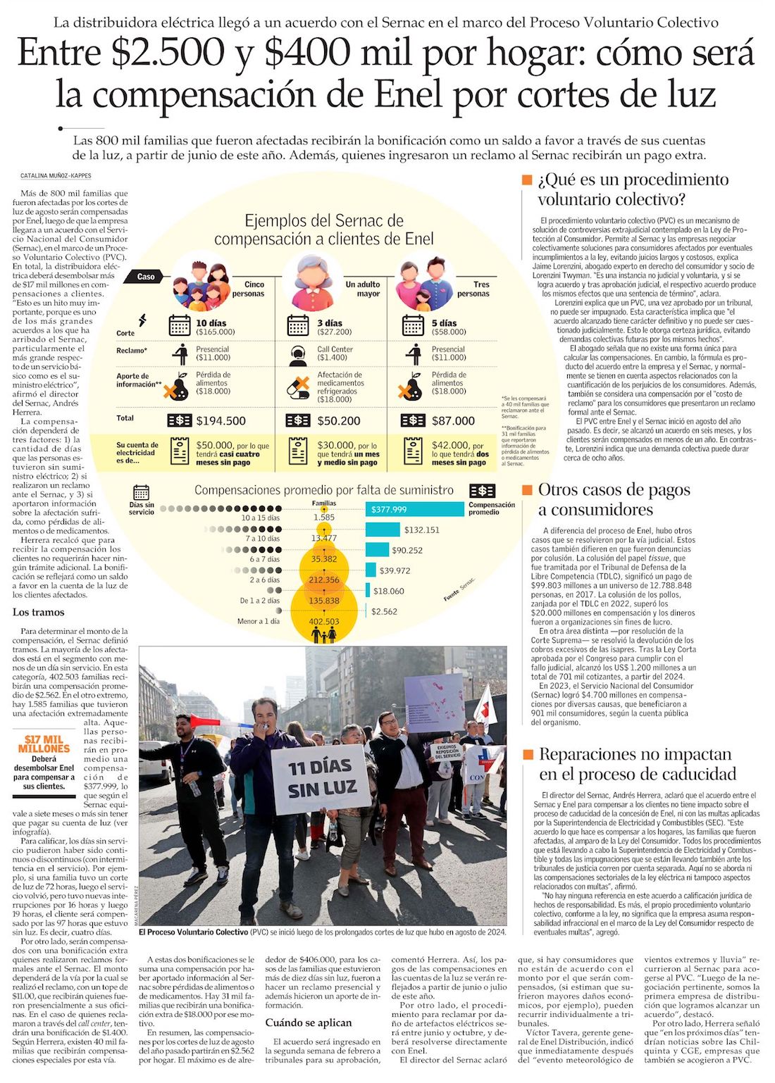 Cortes de luz: Sernac y Enel acuerdan compensaciones por más de $17 mil millones para 800 mil hogares - (Diario Financiero)
