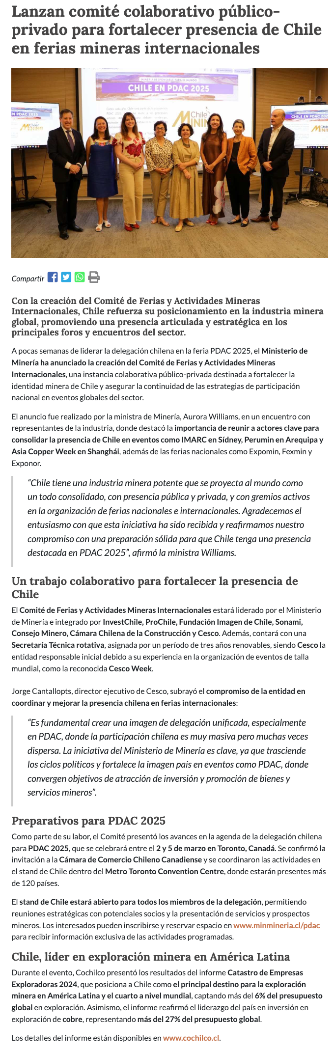 Ministerio de Minería lanza comité colaborativo público-privado para fortalecer presencia de minería chilena en ferias internacionales - (g5noticias.cl)