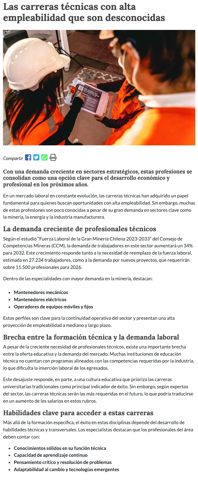 Estas son las carreras técnicas con alta empleabilidad que serán requeridas en los próximos 10 años - (guiaminera.cl)