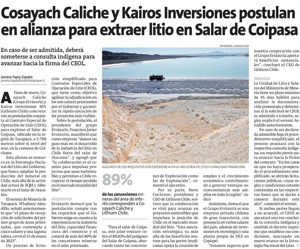 Hay propuesta para litio en salar de Coipasa - (El Mercurio de Antofagasta)